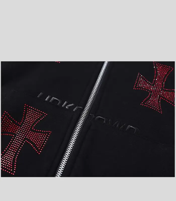 Unknown Black x Red Rhinestone Cross Zip Hoodie 1.webp